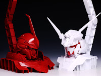 I know you can't tell from the one photo at the end, but the monoeye can turn with the head, in lieu to how the Master Grade 2.0 Zaku kits have been. However, it sticks way easier (i.e., the MG Zaku's eyes don't), and in result, kept looking to the right more than centered >__<. So... I glued it, 'cause I'd rather it be centered than perpetually to the right.